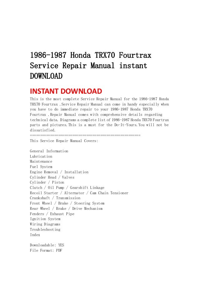 1986 1987 Honda Trx70 Fourtrax Service Repair Manual Instant Download