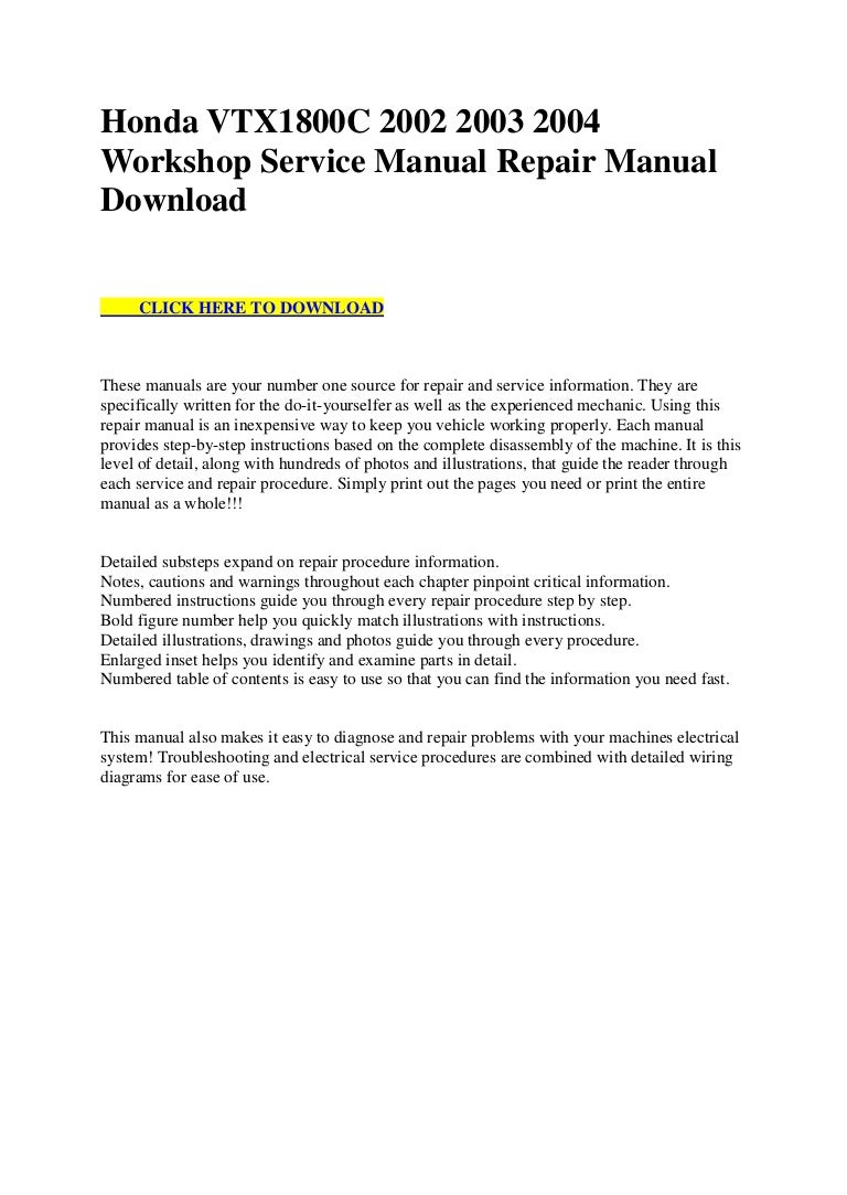 Honda Vtx1800 C 2002 2003 2004 Workshop Service Manual Repair Manual